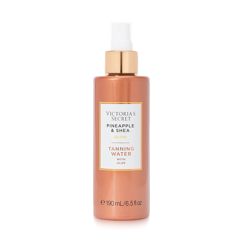 A Pineapple & Shea Glow Tanning Water da Victoria’s Secret é uma água bronzeadora corporal com fórmula leve e refrescante que proporciona um bronzeado dourado natural, sem manchas e com acabamento uniforme. Enriquecida com aloe vera, água de coco, extrato de karité e fragrância tropical de abacaxi, essa bruma é perfeita para realçar o brilho da pele com hidratação e perfume suave.