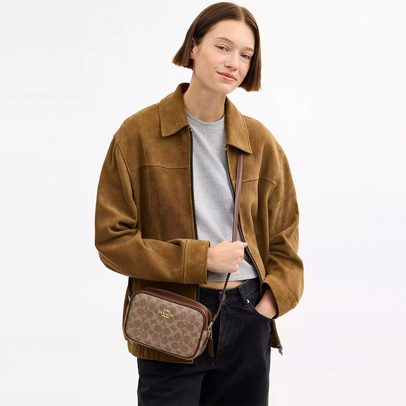 A Mini Jamie Camera Bag da Coach é um dos modelos mais icônicos da marca, combinando o clássico Signature Canvas com detalhes em couro refinado e ferragens douradas. Compacta, leve e extremamente versátil, ela é perfeita para quem busca praticidade sem abrir mão da elegância.