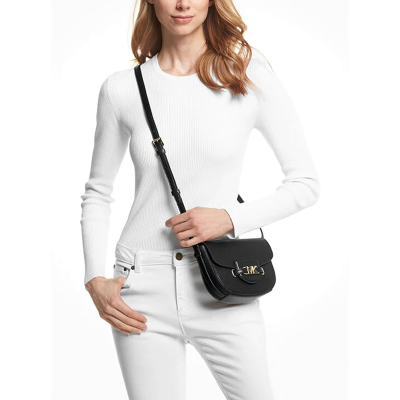Bolsa Michael Kors Reed Small Saddle Crossbody – Couro Pebbled Preto, Original