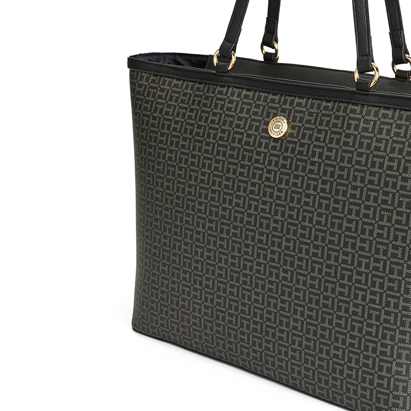 A Tommy Hilfiger Mimi Tote é a escolha perfeita para quem busca elegância, praticidade e um toque clássico da marca. Com seu monograma TH em relevo, ferragens douradas e o icônico medalhão redondo na parte frontal, ela entrega um visual sofisticado e atemporal.