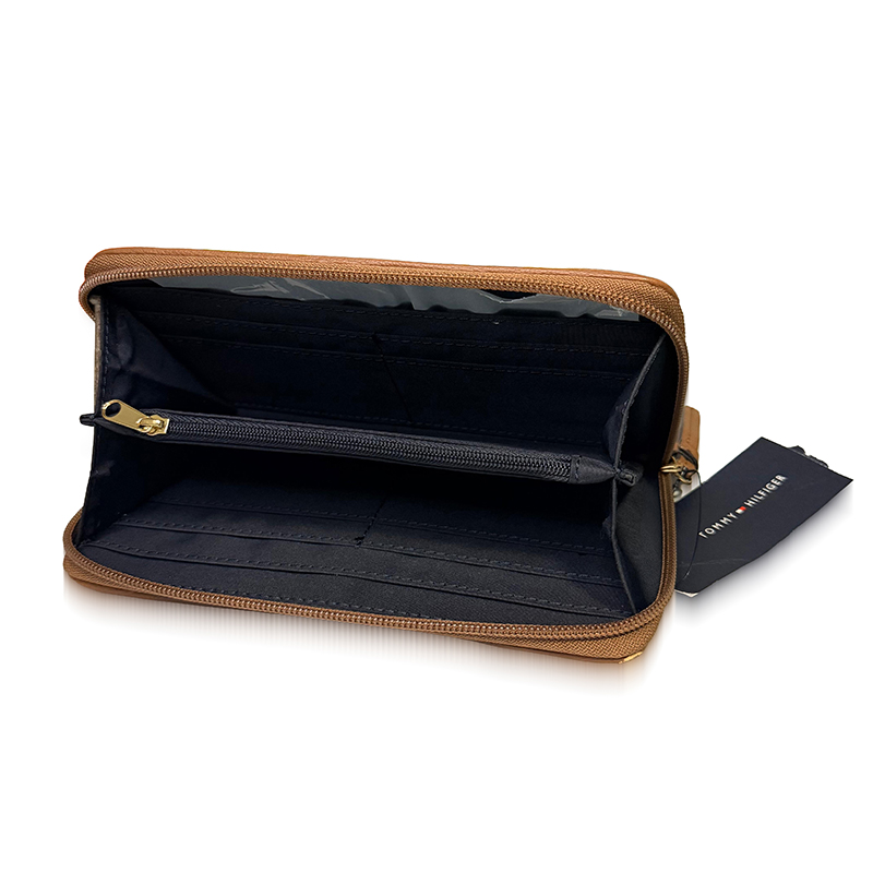 A Carteira Feminina Tommy Hilfiger é perfeita para quem busca elegância, praticidade e qualidade premium em uma peça compacta e funcional. Produzida em tecido texturizado de alta durabilidade, ela traz o clássico charme da marca com o icônico emblema TH dourado na parte frontal.