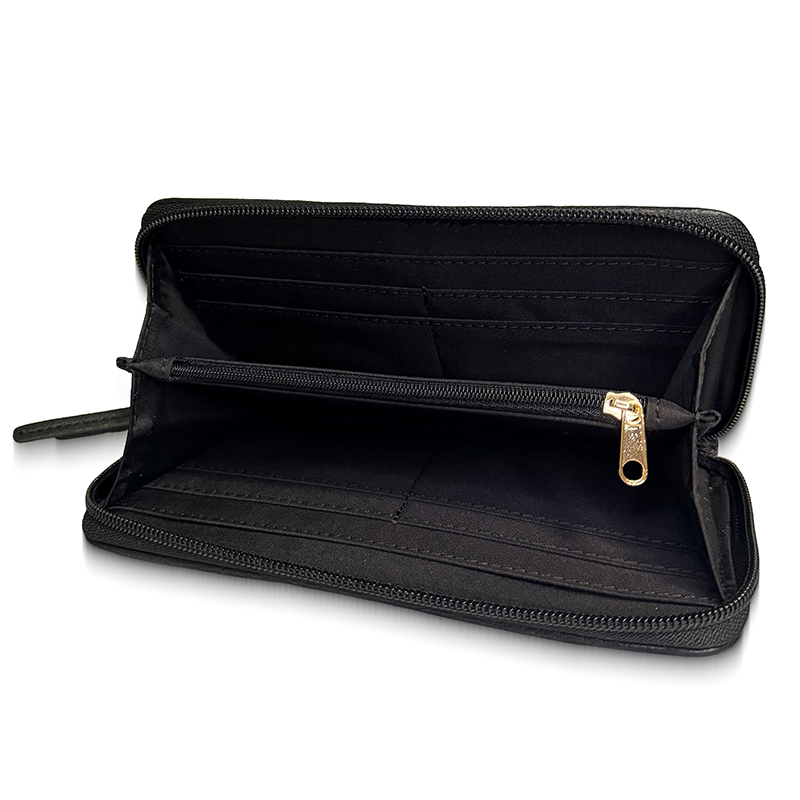 O modelo conta com fechamento em zíper, interior bem organizado com múltiplos compartimentos para cartões, além de um bolso interno com zíper ideal para moedas ou itens pequenos. Uma peça sofisticada, versátil e perfeita para o dia a dia.