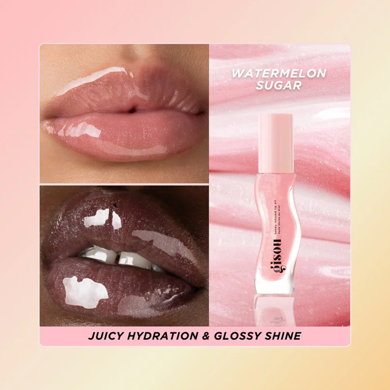 O Gisou Honey Infused Lip Oil é um gloss labial luxuoso, formulado com o exclusivo Mel Mirsalehi, ingrediente‑assinatura da marca, conhecido por suas propriedades nutritivas, reparadoras e hidratantes.