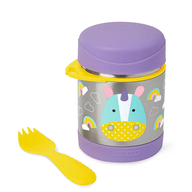 O Skip Hop Zoo Insulated Food Jar – Unicórnio é um pote térmico infantil feito para manter as refeições dos pequenos fresquinhas e na temperatura ideal por horas. Com design divertido da linha Zoo, ele é perfeito para levar lanches, frutas, papinhas, refeições completas ou snacks para a escola, passeios e viagens. Produzido em aço inoxidável, conserva alimentos quentes por até 7 horas e frios por até 5 horas, além de vir com um spork (colher + garfo) que fica preso na lateral para facilitar o uso.