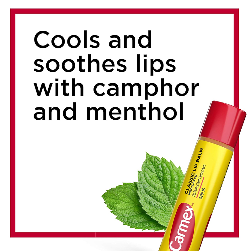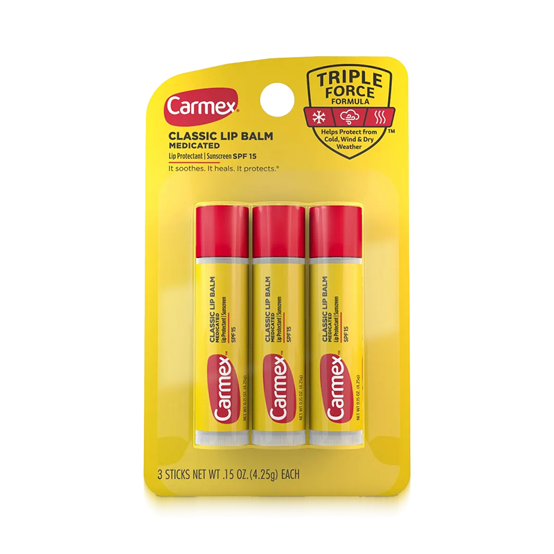 O Carmex Classic Lip Balm Medicated com FPS 15 é um protetor labial terapêutico desenvolvido para proteger os lábios contra os efeitos do frio, vento, clima seco e exposição solar. Com a exclusiva Triple Force Formula, ele alivia, repara e protege os lábios, oferecendo conforto imediato e hidratação duradoura.
