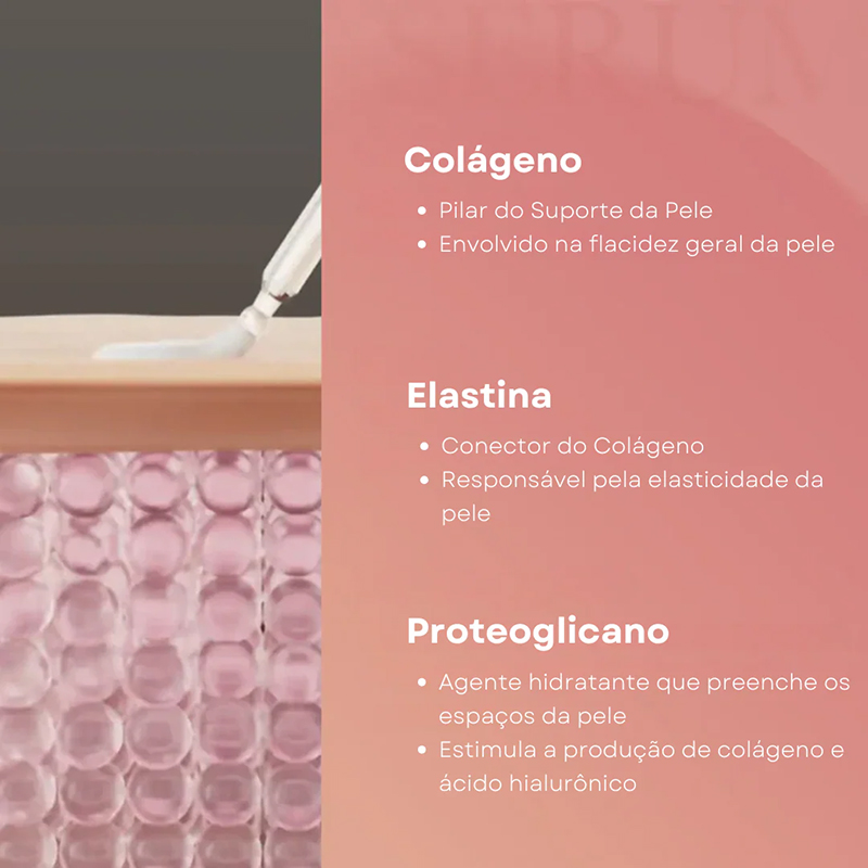 - Elastina Hidrolisada — contribui para elasticidade e sustentação da pele.