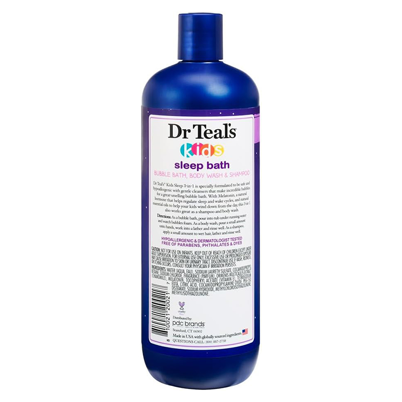 O Dr Teal’s Kids 3‑in‑1 Sleep Bath é um produto multifuncional desenvolvido especialmente para crianças a partir de 3 anos. Ele funciona como banho de espuma, sabonete líquido e shampoo, trazendo praticidade para a rotina e tornando o banho mais divertido. Sua fórmula combina melatonina e óleos essenciais calmantes, ajudando a acalmar a mente e preparando os pequenos para uma noite de sono tranquila. É hipoalergênico, suave para a pele sensível e livre de ingredientes agressivos.